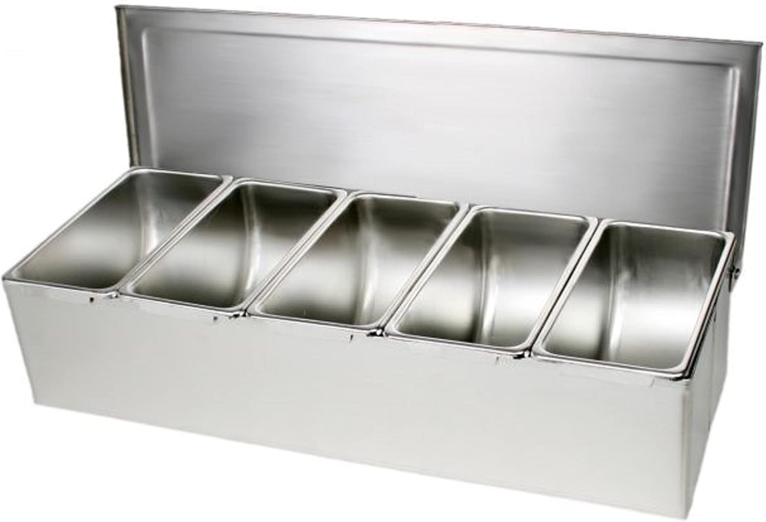 5 Compartment Stainless Steel Condiment Bar (Open Bottom)- Condiment Dispenser Serving Container Garnish Tray Bar Caddy Condiment Server Caddy Garnish Holder for Home Work Restaurant