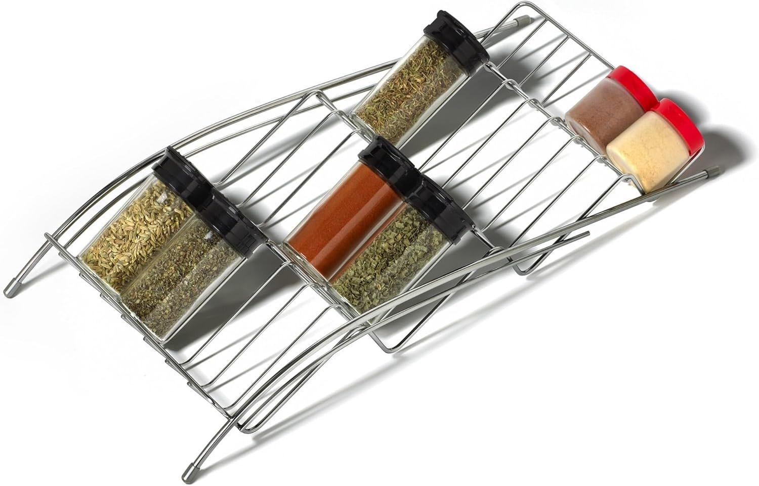 - Lays slightly at angle to keep spices visible and accessible