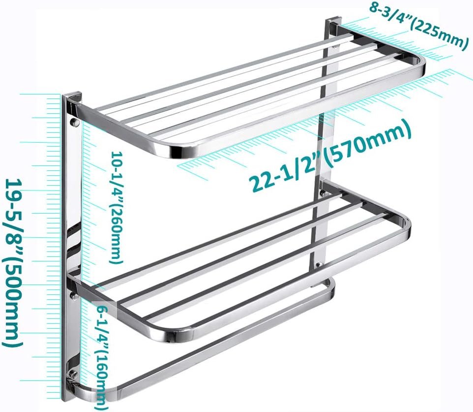 Three-Tier Bathroom Shelf with Towel Bar (22.5 inches, Stainless Steel) – Wall-Mounted Multifunctional